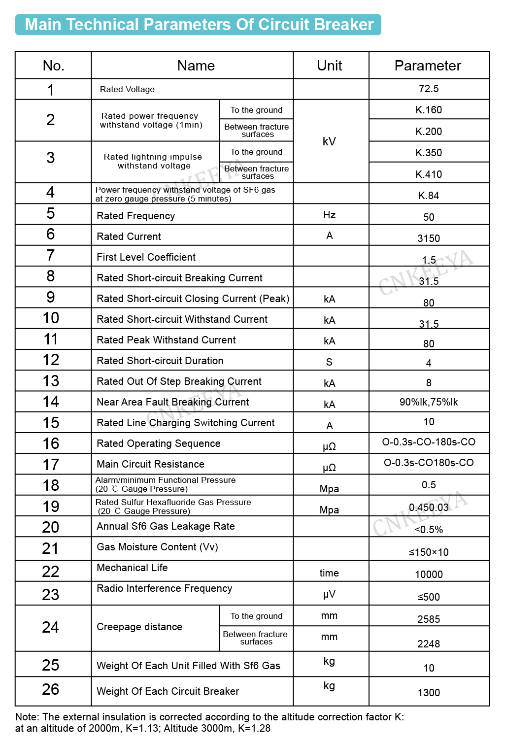 Các thông số điện định mức (điện áp, dòng điện, dòng điện cắt, v.v.); Các thông số điện định mức của mạch điều khiển (điện áp định mức của động cơ tích trữ năng lượng, điện áp định mức của cuộn dây đóng, mở) dựa trên các điều kiện môi trường như nhiệt độ, độ cao và mức độ ô nhiễm;